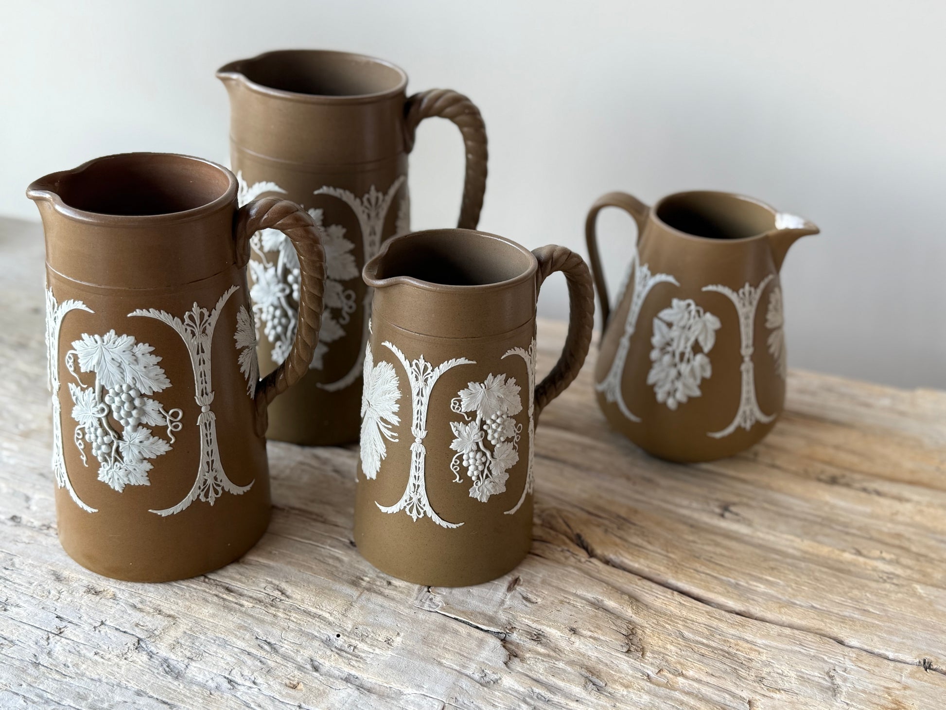 Antique Jasper-ware grapevine design set of jugs